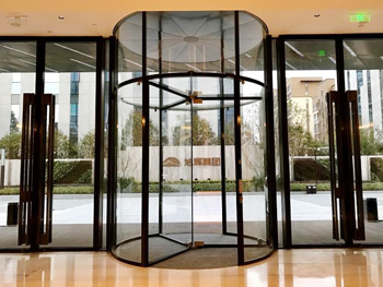 答:自動旋轉門由于其永遠開啟的同時又永遠關閉的特點,使其動態密封效果在經常使用的條件下相對于其他自動門要好。由于自動旋轉門的人流量有限,通常在自動旋轉門兩側另設自動或手動平開門,一方面增加通行能力,另一方面當自動旋轉門出現故障時,不影響人的通過。但在靜態密封效果方面,自動旋轉門遠不如其他自動門,因為其門體運動方式決定著只能使用毛條密封。 自動旋轉門的最大優點在于它“永遠開門,又永遠關門”,即對于人員來說,門總可以打開,可對于建筑物來說門又總是關著。因此,自動旋轉門在保安功能方面具有獨到的發展,但在人員流量方面自動旋轉門卻沒有優勢,因為門的轉速是固定的,每個門翼之間可容納的人員也是有限的。每種自動旋轉門都有標定的人員流量數值。